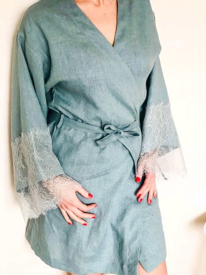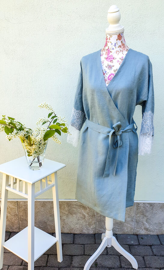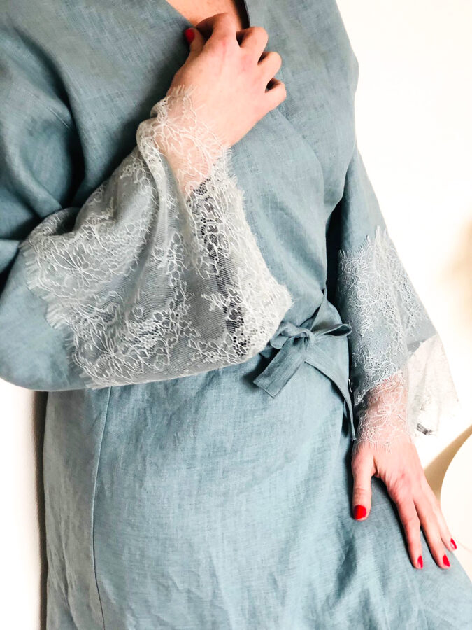 Total lace width - about 23cm from which 1/2 is sown on the actual linen sleeve and 1/2 sown loosely hanging on your arm.